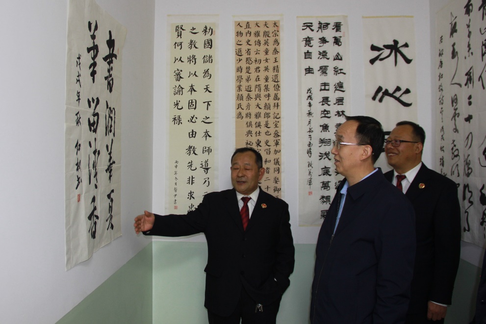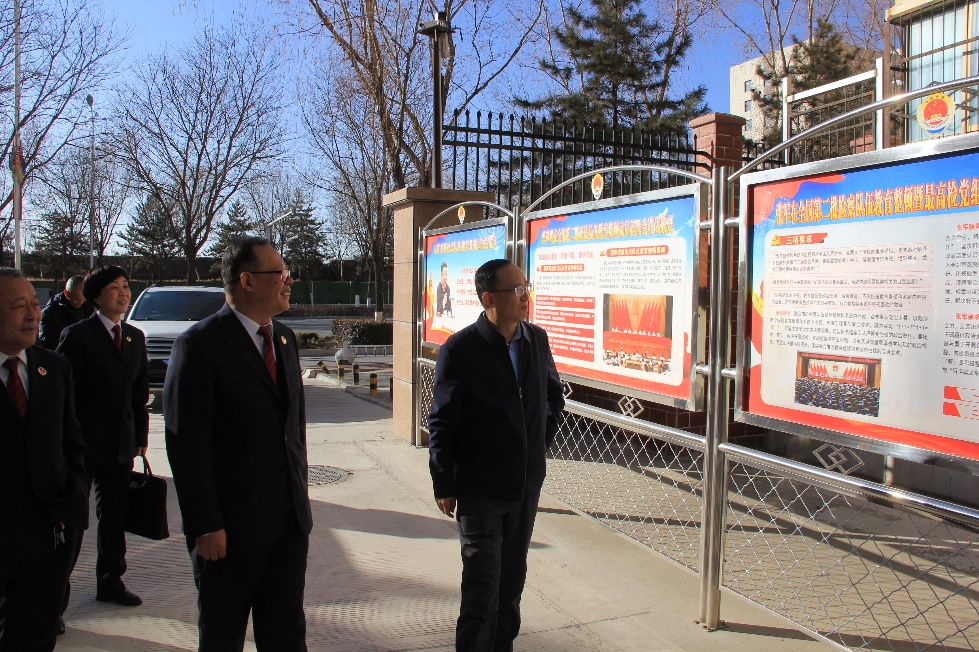 兰检一行三人首先观看了子午岭院教育整顿宣传展板、查看了教育整顿台帐资料,参观了子午岭院内外网机房、档案室、阅览室、检委会会议室和职工食堂,看望了全体干警,并和班子成员进行了座谈。