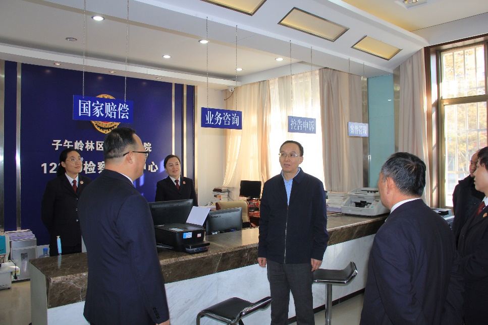 12月23日,林区分院党组副书记、副检察长兰积成带领第三检察部主任张维斌、员额检察官韩瑜督导调研子午岭院工作。