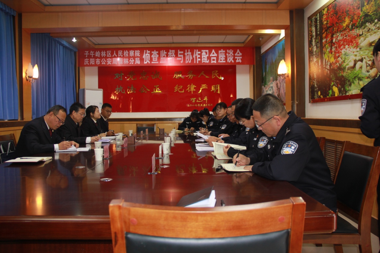 揭牌仪式后,召开了侦查监督与协作配合办公室成立座谈会。会上,组织学习了《最高人民检察院、公安部关于健全完善侦查监督与协作配合机制的意见》《中共中央关于加强新时代检察机关法律监督工作的意见》,宣读了子午岭林区人民检察院、庆阳市公安局森林分局《关于加强检警协作提升办案质效的实施意见》,就进一步完善机制、组织协调、监督协作、督促落实等方面进行了座谈交流。