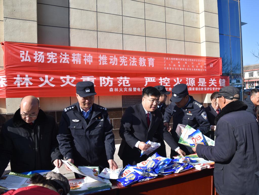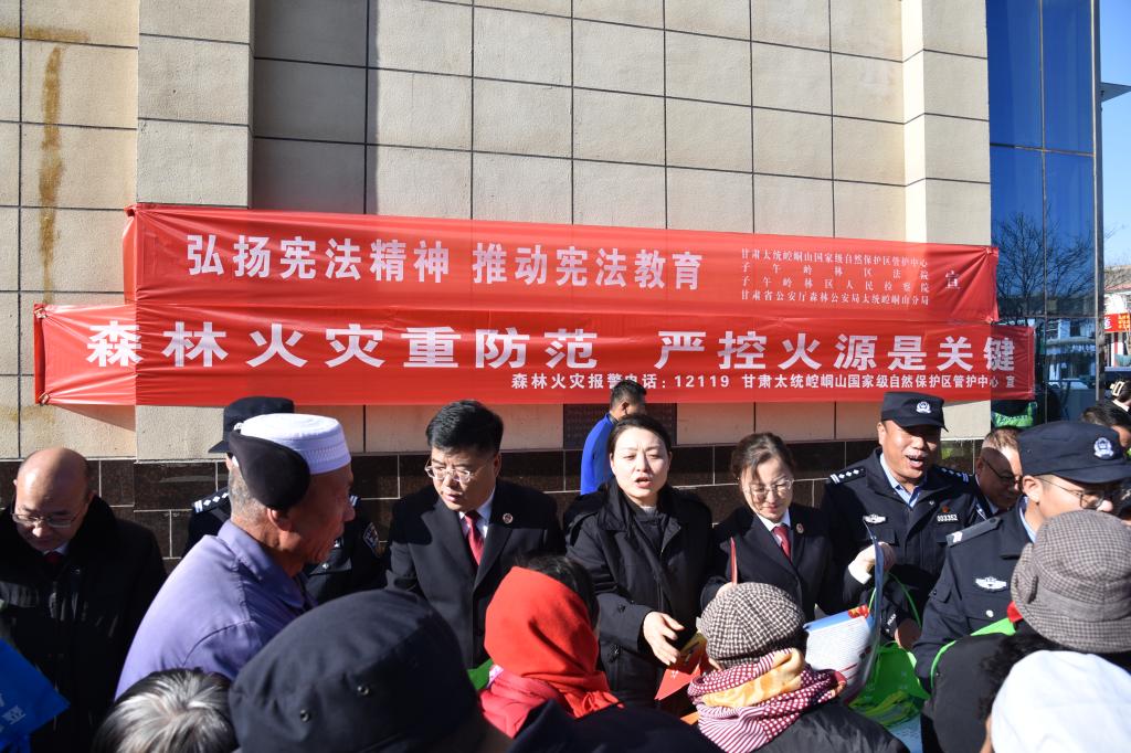 为深入学习贯彻习近平法治思想,弘扬宪法精神,维护宪法权威,增强人民群众的法治观念,在第十一个国家宪法日来临之际,子午岭林区人民检察院与子午岭林区法院、甘肃省公安厅森林公安局太统崆峒山分局以“弘扬宪法精神 推动宪法教育”为主题,在太统崆峒山自然保护区开展了宪法宣传活动。