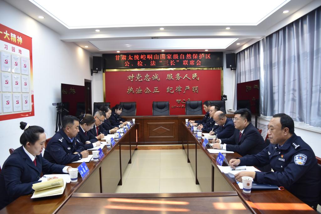 会上,三单位负责人签署了《甘肃省公安厅森林公安局太统崆峒山分局、子午岭林区人民检察院、子午岭林区法院“三长”联席会议制度》,并对近期办理的一起非法狩猎案件进行了深入剖析,重点就证据收集、固定和推进类案治理等方面进行了讨论交流,统一了思想认识。