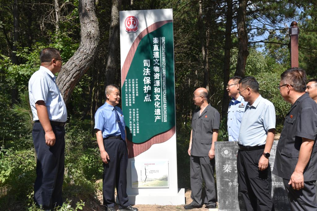 初秋时节的子午岭,数峰凝翠,山风和畅,秦直道的古痕残迹擘开林莽,直插隘喉。漫步在秦直道,树影斑驳,蝉鸣声声,历史的厚重感扑面而来。2025年8月14日,子午岭林区公检法联合庆阳市秦直道管理委员会,在秦直道遗迹旁,共同举行了秦直道遗址司法保护点揭牌仪式,一同为构建秦直道文物资源和文化遗产协同保护体系按下“启动键”。