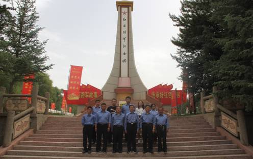 干警们在临泽战役纪念馆,瞻仰革命烈士纪念碑,纪念碑庄重肃穆,气势宏伟,碑正面是徐向前元帅题字“中国工农红军西路军烈士永垂不朽”的题字,字型工整,用生铁镀铜铸成,金光闪烁。象征着1936年12月底红西路军进驻临泽。碑座的三级台阶象征着五军、九军、三十军三个军组成的西路军。