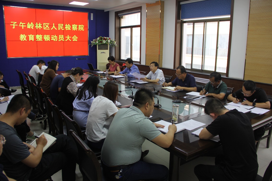在省院、林区分院队伍教育整顿动员部署会议之后,8月19日下午,子午岭林区院立即召开全院检察队伍教育整顿动员部署会议,深入贯彻落实上级院会议精神,迅速启动全院队伍教育整顿工作。院党组书记、检察长慕若舟主持会议,并对全院检察队伍教育整顿工作作出具体安排。