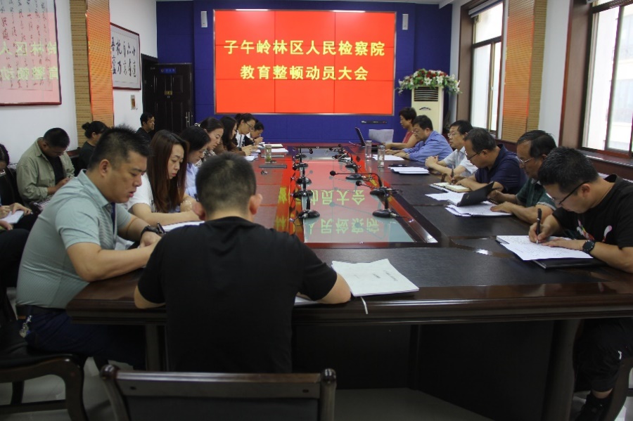 召开检察队伍教育整顿动员部署会议,宣读了全院检察队伍教育整顿领导小组及5个工作专班名单