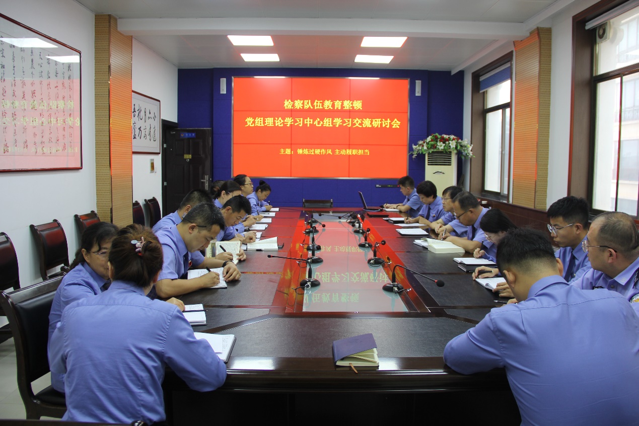 在交流研讨会上,党组中心组成员结合近期专题学习、举办读书班、理论学习和自学、收听收看高检院、省院检察英模事迹报告会、观看警示教育片、聆听廉政教育课和专题党课,畅谈了自己的学习所得。