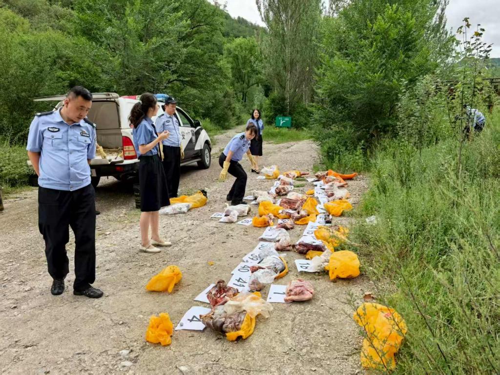 近日,子午岭林区人民检察院依法对甘肃省公安厅森林公安局太统崆峒山分局侦办的已生效的付某某非法狩猎案中涉案野生动物死体销毁过程进行现场监督。为确保处置依法、规范、环保,本次销毁采取无害化填埋方式,检察人员全程监督,对照清单对狍子、蒙古兔和野猪死体肉块的种类、编号、数量予以确认,均系该案查获的涉案野生动物死体。
